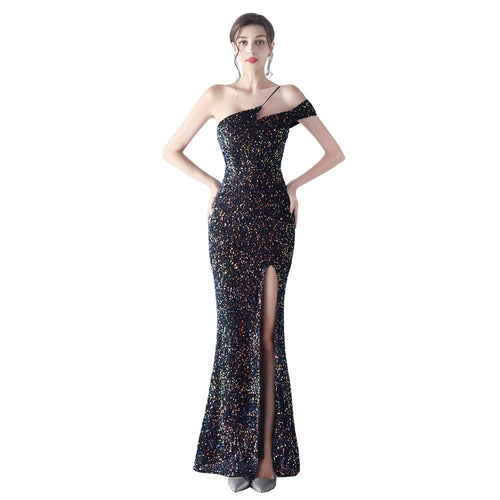 Sexy Sleeveless Slit Sequin Embroidered Maxi Evening Dress -